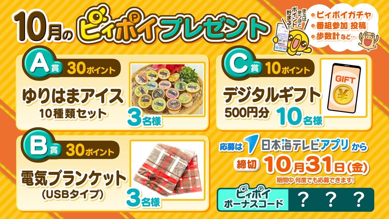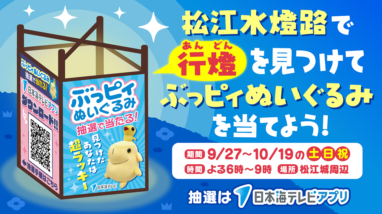 └日本海テレビアプリのガチャでぶっピィが当たる!キーワードを見つけてね!