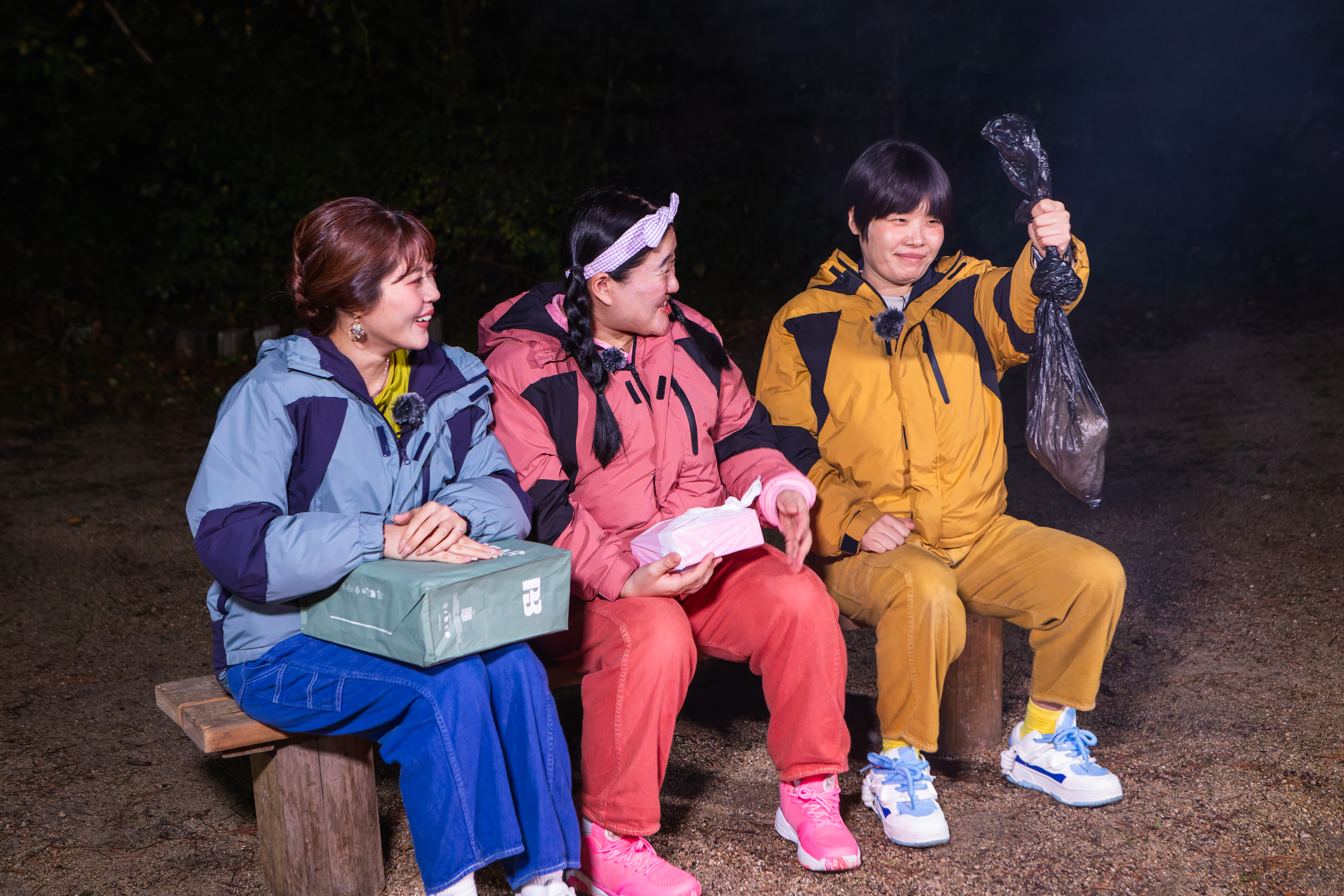 食後は焚火を囲んでクリスマスプレゼント交換。