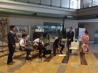 会社のロビーからギターとヴァイオリンの音色が聴こえてきた~~~