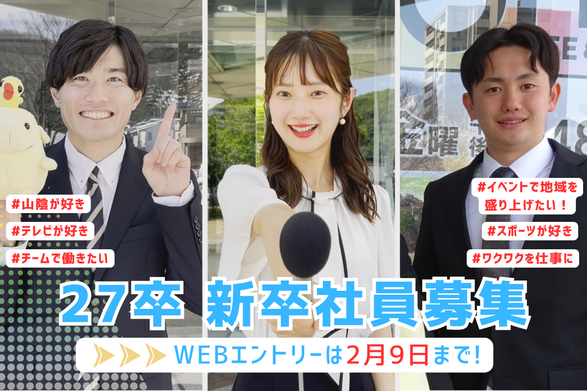 日本海テレビジョン放送株式会社 総務人事部 ☎0857-27-2111㈹ ※平日9時~17時にお問い合わせ下さい。 |