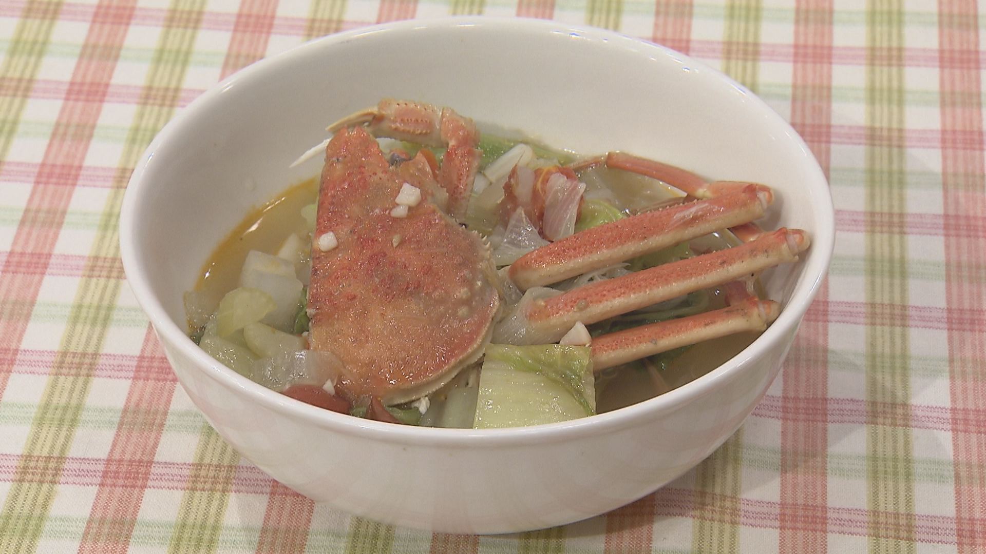 | 作り方 | [作り方] ①生の親ガニを30分ほど水につけておく ②鍋に水と水に対して5%の塩を入れ、親ガニを20分ほど水から茹でる。 茹であがったら、カニを取り出し、キッチンペーパーでこしておく。 ③オリーブオイルをひいた鍋に、みじん切りしたにんにくを入れて香付けしたところに、 1センチほど大きさに角切りした玉ねぎ・人参・セロリ、そして斜め切りにした白ネギを炒める ④③がしんなりしたところにセミドライトマトを入れる ⑤②のだし汁を8~9割ほど加える。)(残りは煮詰まった際入れる)さらにだしを取るときに使った親ガニを半分にわって加える。 ⑥アクを取りながら10~15分ほど煮込む。 ⑦大根と白菜を加え、アクを取りながらさらに10~15分ほど煮込む ⑧⑦に塩・コショウを加え、器にトースターで焼いて生のにんにくをこすったフランスパンを入れ、その上から盛り付ける。 仕上げにオリーブオイルをかけて完成 ☆魔法のスパイスはセミドライトマト 使うことでトマト本来の甘味が増す。 |