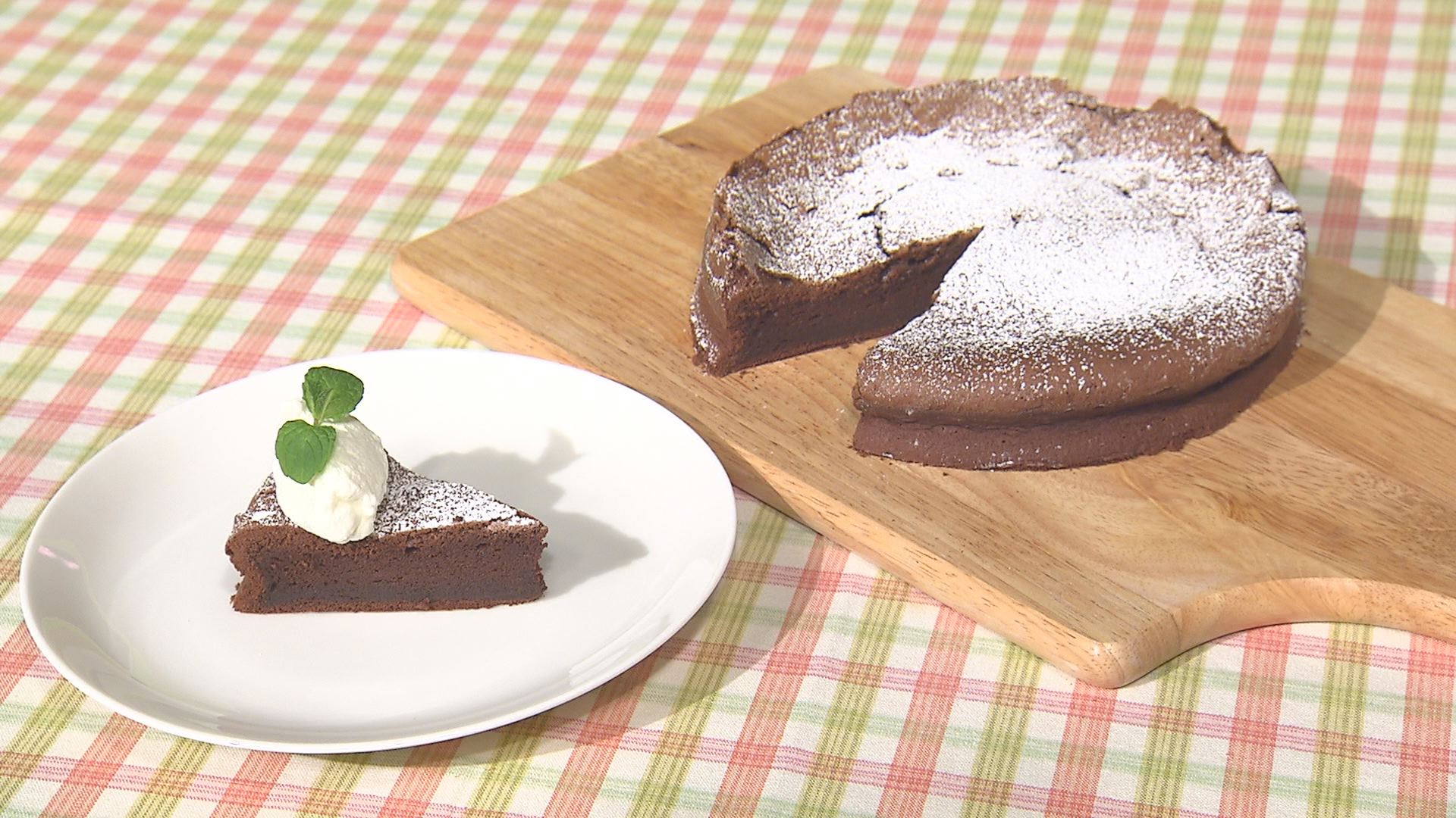 | 作り方 | ①薄力粉とココアパウダーを混ぜてふるっておき、卵は卵白と卵黄に分けておく ②チョコレートを細かく刻んで、無塩バターと一緒に湯煎(お湯の温度は約50~55℃ほど)にかけて混ぜ、溶けたら湯煎から外しておく。 ③ボウルに卵白とグラニュー糖50gを入れて角が立つくらいまでしっかり泡立てる ④別のボウルに卵黄とグラニュー糖40gを入れ、白っぽくなるまで泡だて器で混ぜる ⑤④に溶かしておいたチョコレートを入れ泡だて器で混ぜ、赤ワインを入れさらにしっかり混ぜる。 ⑥ふるっておいた薄力粉とココアパウダーを入れ混ぜる ⑦しっかり混ざったら、③のメレンゲの全体量の1/3を入れてしっかり混ぜる ⑧残ったメレンゲを2回に分けて入れ、ゴムベラ(または木べら)で生地にツヤが出るまでしっかり混ぜる ⑨無塩バター(分量外)を塗り、薄力粉(分量外)をふるった丸型に⑨を流し入れ、型を台に落として空気を抜く ⑩180℃に熱したオーブンで20分、さらに160℃で10分焼く ⑪竹串を刺して、焼き上がりを確認し、あら熱を取った後、粉糖を振って完成 |