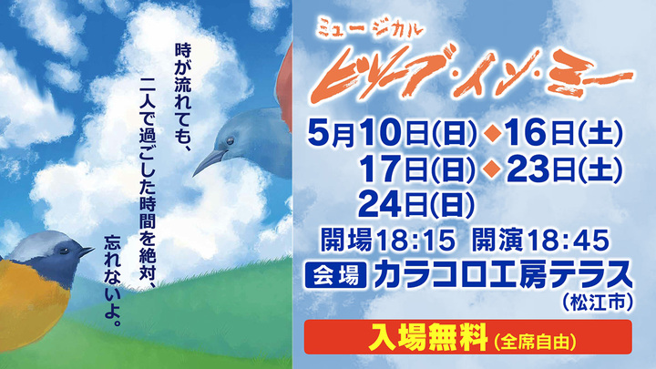 お問合せ:YUMEBANCHI(岡山)086-231-3531<平日12:00~17:00>(岡山・鳥取公演)