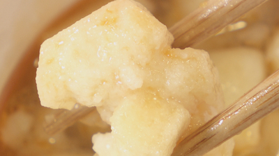 ピリ辛揚げ餅味噌汁