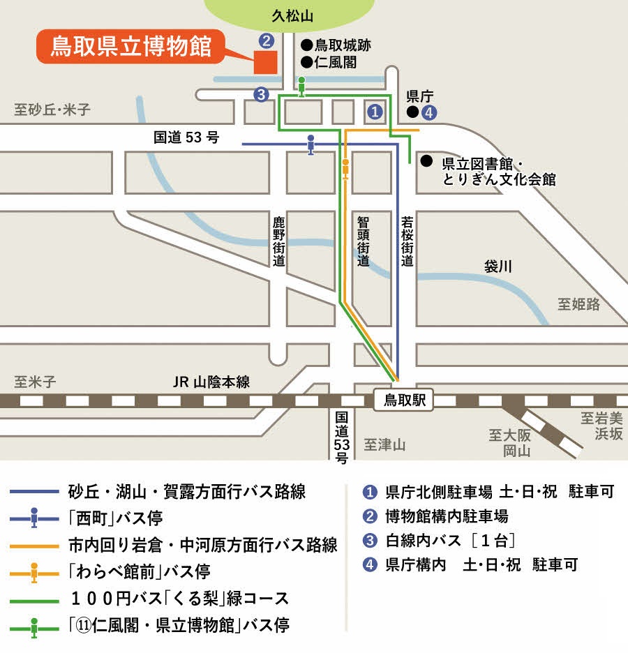 「鳥取県立博物館」の利用案内およびアクセス方法はこちらをご確認ください。