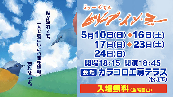 2000年、島根県が「21世紀の子どもたちに伝えたいこと」をテーマに脚本を公募し、大賞に選ばれた作品から生まれたオリジナルミュージカル。今回は2013年以来、13年ぶりの上演です。