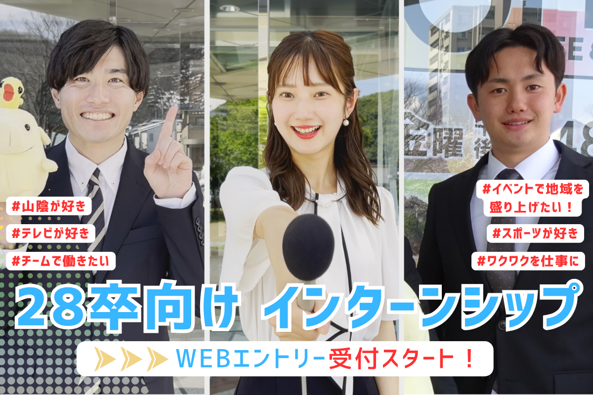 マイナビ2028にて、「エントリー」のタブからエントリーください。 エントリーいただいた方へ決まり次第お知らせいたします! ///エントリーはこちらから/// ★参考(昨年内容)★ 1day仕事体験・オンラインオープンカンパニーのスケジュール 【対面開催】 ●コース1:(理系・文系)総合職篇 日時:2025年9月13日(土)9:00~17:00 ⇒オンラインご予約〆切:8月25日(月)24:00まで エントリーシート〆切:8月31日(日)23:00まで ●コース2:(機械・電気・情報システム系学生)メディアエンジニア篇 日時:2025年8月~9月の平日(月~金)13:00~2時間程度 ⇒随時受付(個別にスタジオ使用状況と調整します) 【オンライン開催】~Teamsにて開催します~ 〇コース1:(理系・文系 歓迎) 日時:2025年8月27日(水)10:00~11:30 ⇒オンラインご予約〆切:8月26日(火)12:00 〇コース2:(理系・文系 歓迎) 日時:2025年9月11日(木)10:00~11:30 ⇒オンラインご予約〆切:9月10日(水)12:00 ※プログラム詳細は以下ご参照ください ---------------------------------------------------------------------------------------------------- 【対面開催】1day仕事体験 ●コース1:(理系・文系共通)総合職篇 日時:2025年9月13日(土)9:00~17:00 場所:(日本海テレビ本社)鳥取市田園町4丁目360番地 番組制作だけではないテレビ局の幅広い仕事内容を体験していただけるプログラムです。 様々な部署の社員が直接レクチャーします。当日はたくさんの社員と交流いただける機会です。 当社の雰囲気を肌で感じて実際に働くイメージができるプログラムを複数用意しております。 ■プログラム(予定) (1)企業説明・会社見学 生放送、ニューススタジオ、放送設備、中継車などの見学を予定しています。 テレビ局の裏側を見ていただける貴重な機会です! (2)仕事体験 〇編成・営業〇 番組表制作やコンテンツ戦略、テレビコマーシャルの営業について体験いただきます。 また、テレビCMの線引きを体験いただけるコンテンツです。 〇報道〇 報道記者の体験をしていただきます。 先輩社員のレクチャーを受けて、ニュース原稿を書いていただくコンテンツです。 インタビュー体験や原稿を書いていただき、 個別に先輩社員からのフィードバックを予定しています! 〇制作・技術〇 情報番組「スパイス!!」のコーナーを体験いただくコンテンツです。 アナウンサー、ディレクター、カメラ、テクニカルディレクター、 スイッチャー、音声などの仕事を実際の放送設備を使用して体験していただきます。 開催日放送の「スパイス!!」のリアルな台本を使って、 放送機器の操作など、スタジオでの制作&技術の仕事を擬似体験いただきます。 スタジオ設備に実際に触れられる貴重な機会です この他、テレビ局の仕事を先輩社員が多数登場して直接レクチャーします! (3)フィードバック ※当日は実務体験がありますので、動きやすい服装・スニーカー等でご参加ください。 ●コース2:(機械・電気・情報システム系学生)1day仕事体験【メディアエンジニア篇】 日時:2025年8月~9月の平日(月~金) 13:00~2時間程度(スタジオ使用状況と調整します) 場所:(日本海テレビ本社)鳥取市田園町4丁目360番地 学生時代に学んだ機械・電気・情報システムの知識を生かして働ける仕事を紹介します! 個別に日程調整をいたしますので、ご希望の方はマイナビからご予約ください。 メディアエンジニアは、テレビ局にはなくてはならない存在です。 当社の雰囲気を肌で感じて実際に働くイメージができるプログラムを複数用意しております。 ■プログラム (1)企業説明・会社見学 ニューススタジオ、放送設備、中継車などの見学を予定しております。 メディアエンジニアが多数活躍するテレビ局の裏側を見ていただける 貴重な機会です。 (2)仕事体験 「One LIfe & News」のスタジオを使用して、 テクニカルディレクター、スイッチャー、音声、カメラなどの仕事を体験していただきます。 この他、若手社員がどんな仕事を実際に行っているのか どんなプロジェクトを担当しているのかなどもお伝えいたします。 (3)フィードバック ○当社へのアクセス 鳥取駅、鳥取空港方面からお越しの際は、『城北団地』のバス停で下車ください。 バス停から徒歩すぐの距離にあります。 --------------------------------------- 【オンライン・オープンカンパニー】 ○コース1(理系・文系 歓迎) 日時:2025年8月27日(水)10:00~11:30 機械・電気電子を学んで活躍するメディアエンジニアと、 WEBマガジンna-na・新規事業を手掛ける社員が参加予定です! ○コース2(理系・文系 歓迎) 日時:2025年9月11日(木)10:00~11:30 機械・電気電子を学んで活躍するメディアエンジニアと、 報道制作を志望し入社した報道記者の新入社員が参加予定です! オンライン・オープンカンパニーはいずれもご予約いただいた方から先着順にご参加いただけます。 カフェスタイルでざっくばらんに対話形式での開催です。 残業時間はどのぐらい?、仕事のやりがい、職場環境など、 各部門の社員が学生の皆さんからの質問にお答えします! 【開催形式】 WEB開催(Teamsを使用します) ・ご自