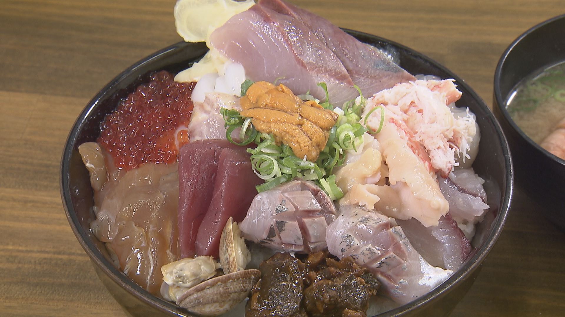 | 紹介文 | お魚屋さんが経営する日吉津の海鮮丼専門店。 境港直送の新鮮な魚介をふんだんに使用し、 様々な種類の海鮮丼を提供している。 番組で紹介したのは、上海鮮丼:1,396円 |