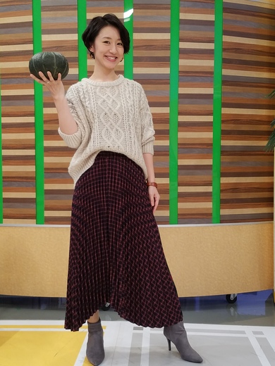 ・ショートケーブルプルオーバー・チェックプリーツスカート(ライトオン鳥取トリニティモール店)