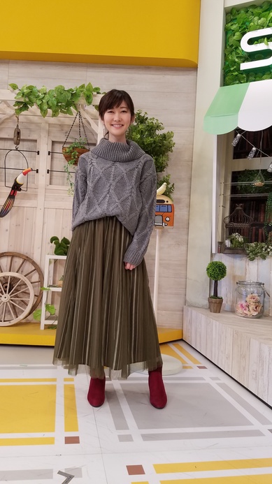 ・ケーブルタートルチュニック・ストライププリーツスカート(ライトオン鳥取トリニティモール店)