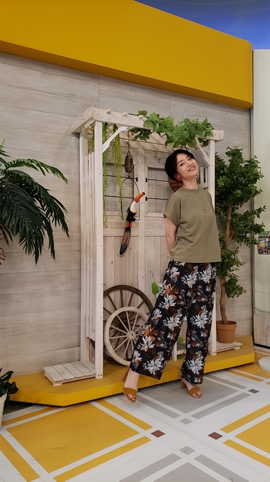 ・ターンバックTシャツ・リゾート柄ワイドパンツ(ライトオン鳥取トリニティモール店)